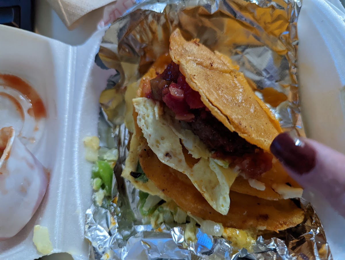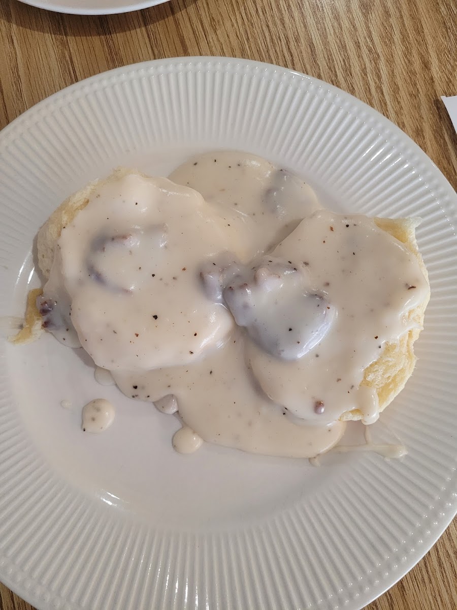 Hidden Gem! We're not from around here and went a few times while on our stay here. Coffee orders are large and small. The first day, we ordered with no substitutions but noticed the weak coffee flavor. The second day, I ordered an extra shot in my winter specialty drink, and it was perfect. We enjoy espresso straight, so our double shot of espresso was very smooth! The waffles have a crunch, sweet like sugar coating on them - so delicious! The Veggie Omlette was huge and filling. Half order of biscuits and gravy was a perfect size for light breakfast. Highly recommend stopping!